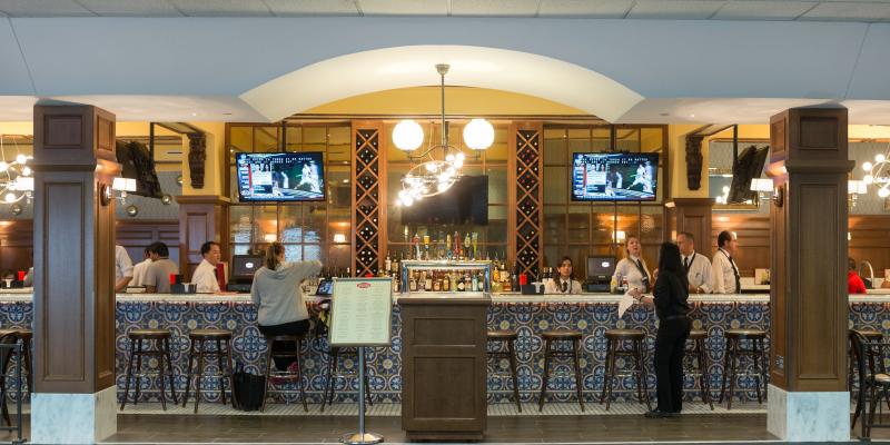 Dulles International está reordenando toda su oferta de concesiones, así que si llega con tiempo, podrá disfrutar de las numerosas tentaciones. Elija entre restaurantes en los que se puede comer sentado y comidas rápidas y para llevar entre visitas a las tiendas locales y nacionales. Algunos de los restaurantes nuevos están recibiendo críticas muy positivas: The Kitchen by Wolfgang Puck ofrece un menú para sentarse y opciones para llevar. Chef Geoff’s, cuyas hamburguesas y enrollados de beicon adoran los residentes de Washington DC, ha abierto hace poco. El Bar Symon del renombrado chef americano Michael Symon sirve platos tradicionales (prueben el sandwich de cerdo con salsa barbacoa con café y ensalada de col cremosa) y cervezas artesanas locales. &pizza es una cadena local que refleja la cultura popular de su zona.
