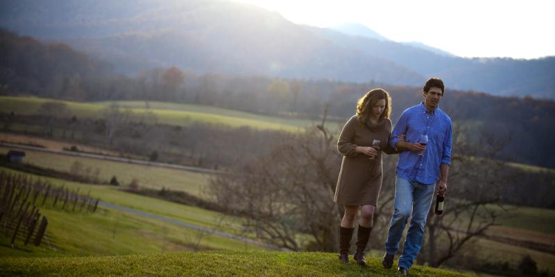 Celebre el lugar de origen del vino estadounidense, mientras disfruta de todo lo que le ofrece la ruta del vino de Monticello, con su profunda trascendencia histórica y vistas de las montañas Blue Ridge desde los exuberantes viñedos.