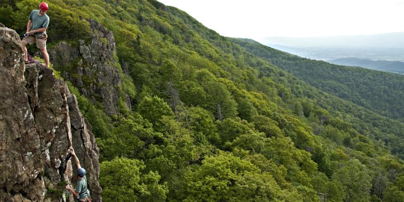 Los montañistas más experimentados pueden aprovechar Old Rag Mountain (montaña Old Rag) en el Shenandoah National Park, uno de los lugares más populares para la escalada en roca, en fisura o en adherencia, en el granito más largo de la región. Si deseas más opciones de escaladas, considera Grayson Highlands State Park (parque estatal Grayson Highlands) y McAfee Knob, ambas parte de los Appalachian Mountains (montes Apalaches). Ya sea que tengas un nivel principiante o intermedio, suscríbete a las Shenandoah Mountain Guides (Guías de montaña de Shenandoah) o Blue Ridge Mountain Guides (Guías de montaña de Blue Ridge) para conocer los servicios de escalada guiada.