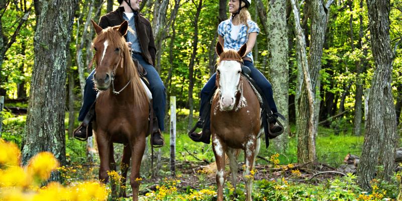 Elk Mountain Trails en Knoxville, Maryland, ofrece recorridos para todos los niveles de experiencia que te llevan por las hermosas montañas Blue Ridge Mountains. También puedes explorar las laderas de Blue Ridge en Virginia con uno de los populares paquetes de paseo en caballo de Marriott Ranch. Este operador, al igual que otros, ofrece todo lo que necesitas para ver y pasear a caballo por las montañas.
